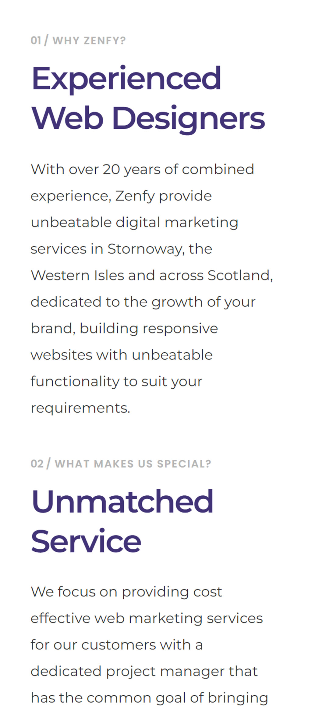 At Zenfy, we're dedicated to elevating your brand's online presence through stunning, contemporary web design and customized SEO strategies. Our team is committed to understanding your unique needs and crafting solutions that reflect your brand identity. Let us help you stand out in the digital landscape and reach your target audience effectively. Elevate your online presence with Zenfy today.